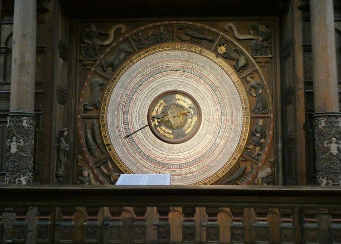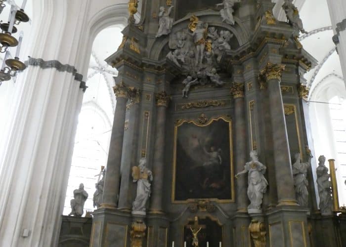 Der Bau der heute dreischiffigen Basilika war Mitte des 15. Jahrhunderts abgeschlossen. Es wird innen gerade renoviert. Besonders eindrücklich ist hier die astronomische Uhr von 1472, von Hans Düringer geschaffen. Heute ist diese Uhr weltweit die einzige, die noch ihr historisches Uhrwerk besitzt, das an jedem Morgen per Hand aufgezogen wird. Um die Uhr im 2. Weltkrieg zu schützen, hatte man sie zugemauert.