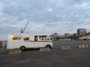Vor Rostock kaufen wir bei einem Einkaufszentrum wieder Proviant ein, Essen in einem Restaurant zu Mittag und suchen dann in Rostock den von anderen Campern empfohlenen Parkplatz am Hafen.