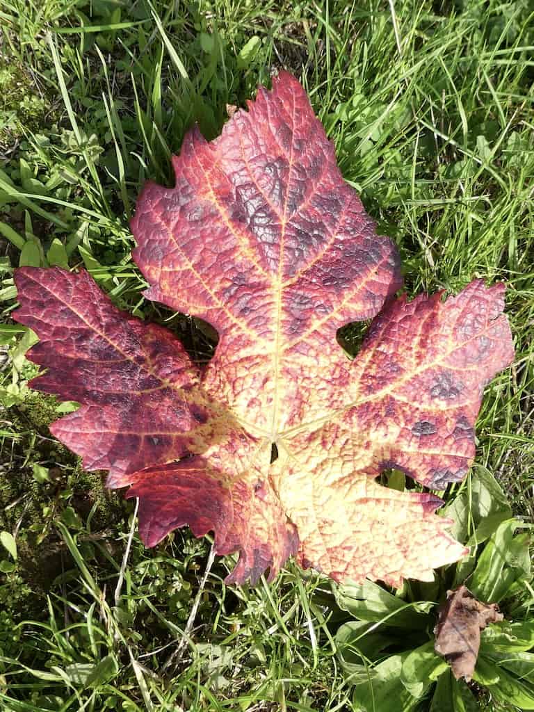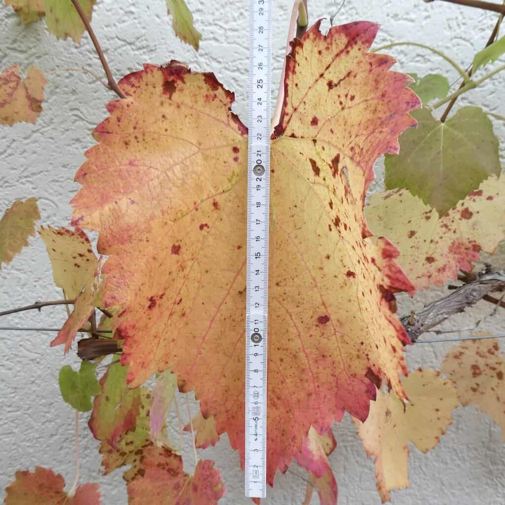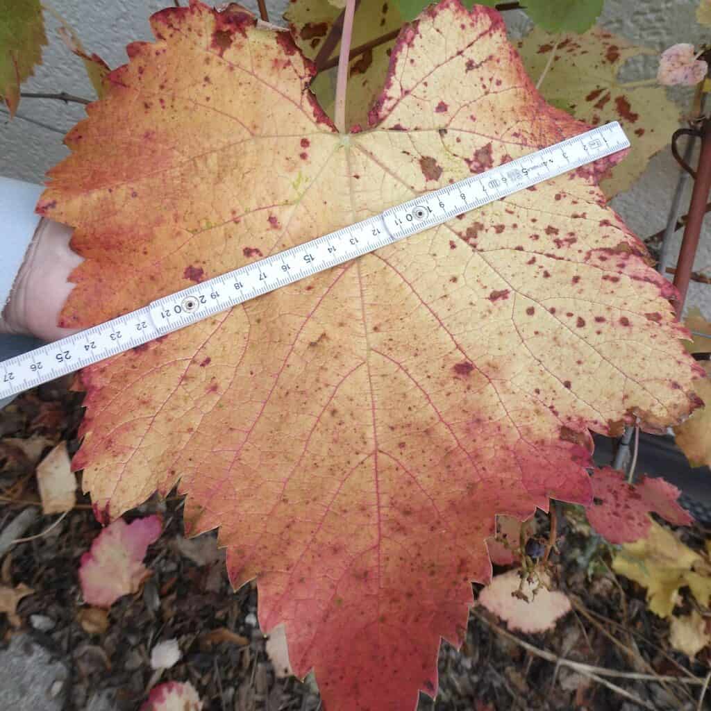 Im Weinlaub an der Hauswand neben unserem Camper entdecken wir ein ungewöhnlich grosses Blatt.
