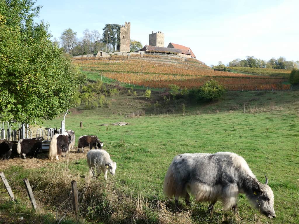 Gleich neben dem Stellplatz und unterhalb der Burgruine wird allerdings auch etwas Viehwirtschaft betrieben.
