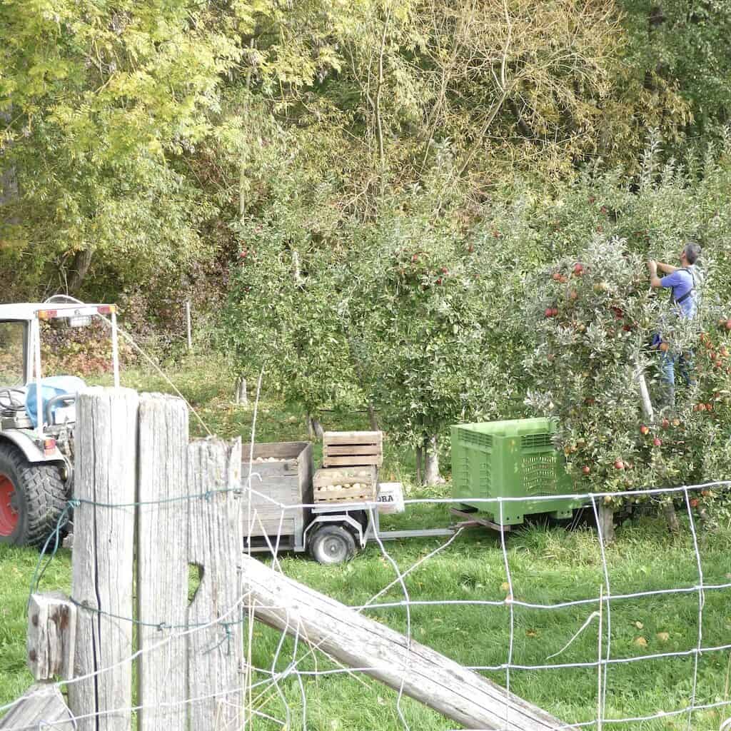 Später kommen wir zu einer richtigen Apfelplantage. Einer der Erntehelfer reicht uns sogar grosse Äpfel über den Zaun. Eine sehr saftige und gut schmeckende Sorte. Leider haben wir nicht nach dem Namen gefragt.