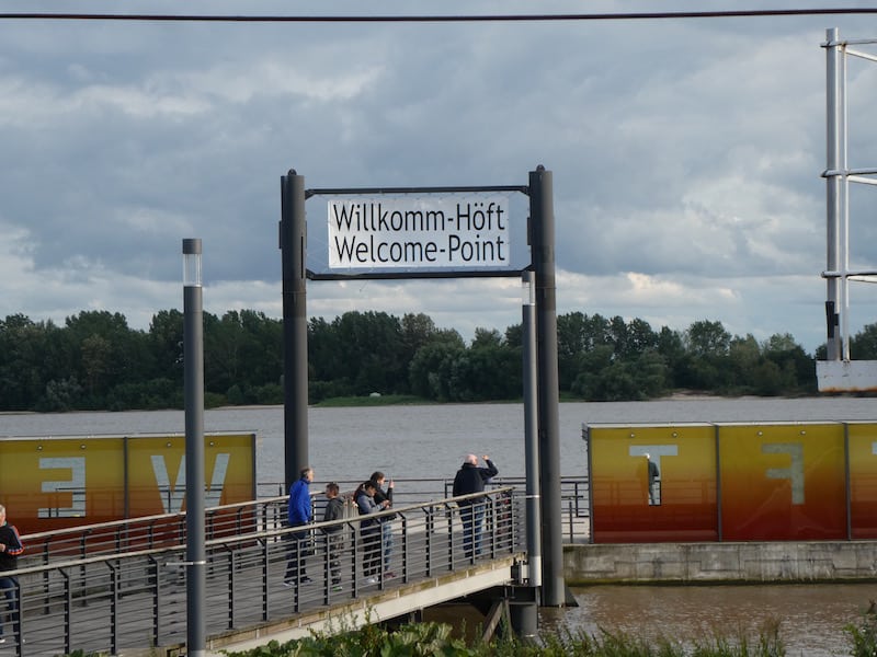 Wir landen im Restaurant „Schulauer Fährhaus“ bei der Schiffsbegrüssungsstation.