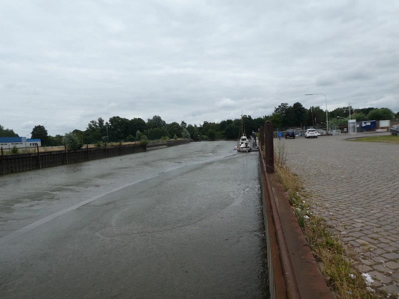Um 21:00 haben sie schon wieder Wasser unter dem Kiel. Am besten erkennt man den Unterschied am Gefälle des Schwimmsteges.