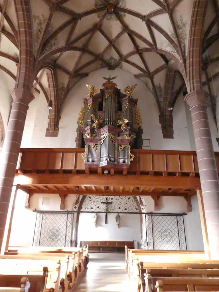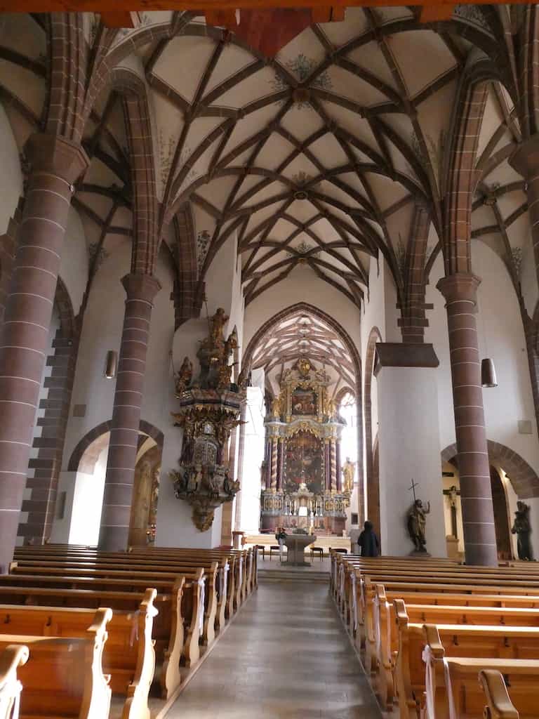 Die dreischiffige Hallenkirche St. Peter und Paul, erbaut im Stil der schwäbischen Spätgotik. In der heutigen Ausstattung dominiert der Barock.