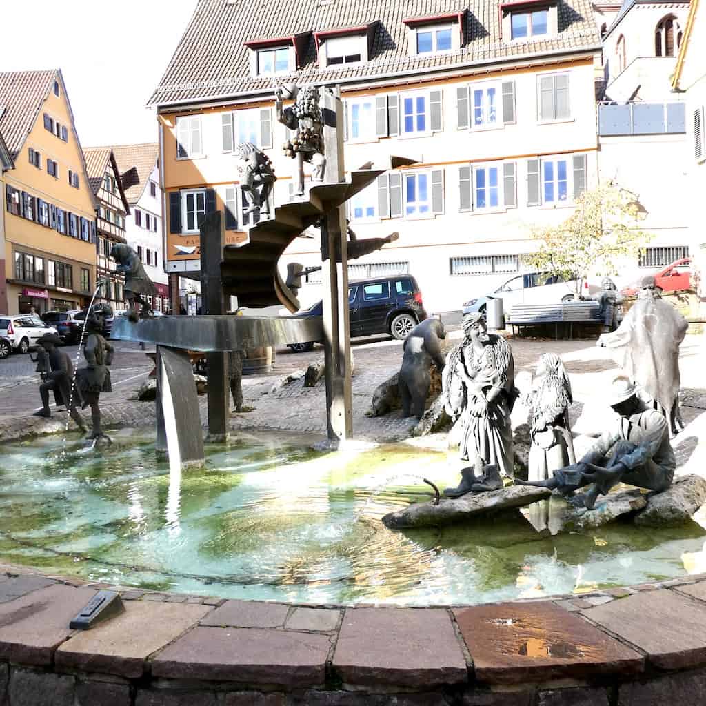 In Weil der Stadt wird die schwäbisch-alemannische Fasnacht intensiv zelebriert. Da passt natürlich dieser Narrenbrunnen mit den lustigen Figuren. Nebst dem Narrenbrunnen gibt es noch 14 weitere Brunnen, die früher Mensch und Tier mit Trinkwasser versorgten.
