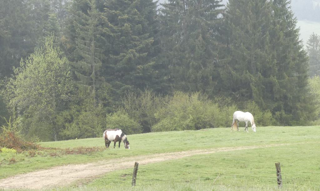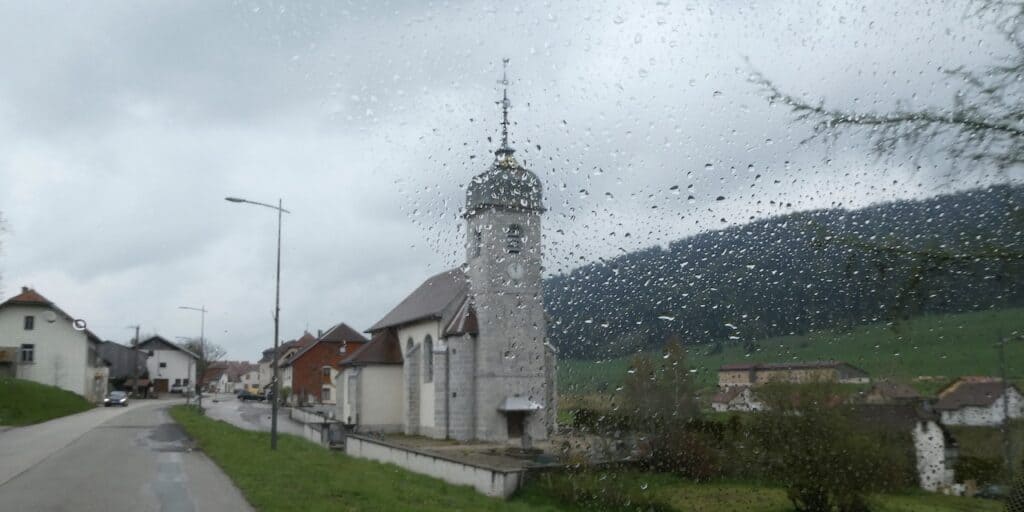 Auch als wir heute Morgen den wunderschönen Übernachtungsplatz bei Pontarlier verlassen, regnet es.