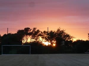 Wir beginnen den Blog mit dem Sonnenuntergang von gestern. Man hätte ein Feuer hinter dem Sportplatz vermuten können.