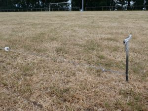 Die Erklärung: An einem Ende des Platzes ist ein Stahlseil befestigt.