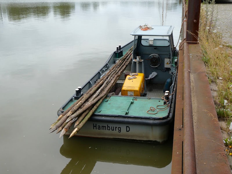 Sie sollen das Fahrwasser mit „Pricken“ kennzeichnen, die hier auf dem Boot bereit liegen. Das Besondere aber ist ihre Arbeitszeit: Die beträgt nur knapp 2 Stunden, nämlich eine Stunde vor und eine Stunde nach Hochwasser. Klingt nach einem Traumjob. Denn bevor das Wasser ganz weg ist, müssen sie wieder hier sein, sonst stecken sie mit dem Boot im Schlick fest.