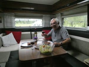 Aber Fleisch vom Grill gibt es heute bei uns auch. Dazu Salat und einen passenden Rotwein. Rundum nur zufriedene Gesichter!
