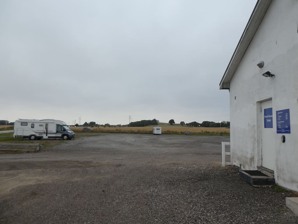 Der Stellplatz in Vellinge, auf dem wir gestern im Dunkeln ankamen, ist nicht besonders attraktiv, nachts aber ruhig. So hat er seinen Zweck erfüllt. Es gibt auch Strom, Wasser und ein Sanitätsgebäude mit Toilette und Dusche, was wir aber alles nicht brauchen. Bezahlt wird ganz einfach, indem der Betrag, 100 Kronen oder 10 Euro, in einen Briefkasten gesteckt wird.