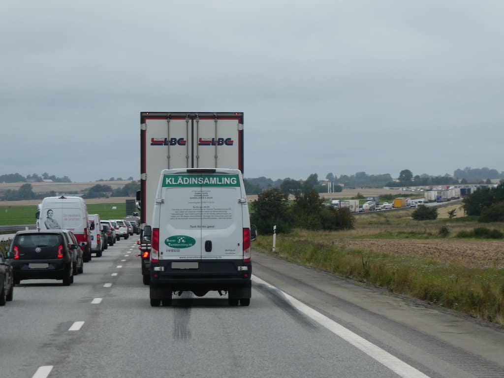 Mit dem Tempomaten auf 110 km/h gestellt, kommen wir lange gut voran. Einmal allerdings staute sich der Verkehr über einige Kilometer.