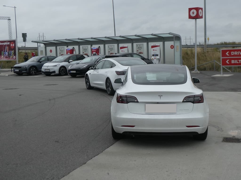 Stau sahen wir auch bei einer Ladestation für E-Autos. Die wollen hier alle ihre Batterie aufladen. Das kann dann auch dauern.