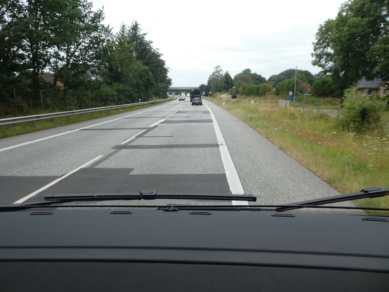 Allerdings ist die Strasse B205 teilweise unter aller Sau. Wir fahren mit 2 Rädern auf dem Pannenstreifen, damit unsere Blomben nicht aus den Zähnen fallen.