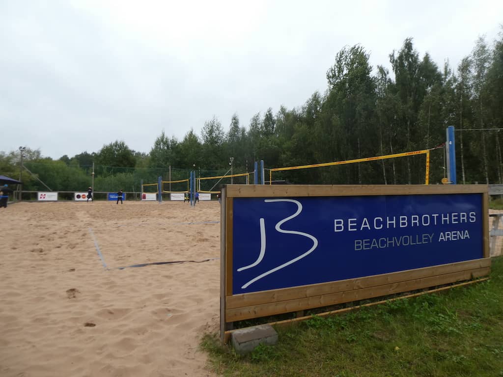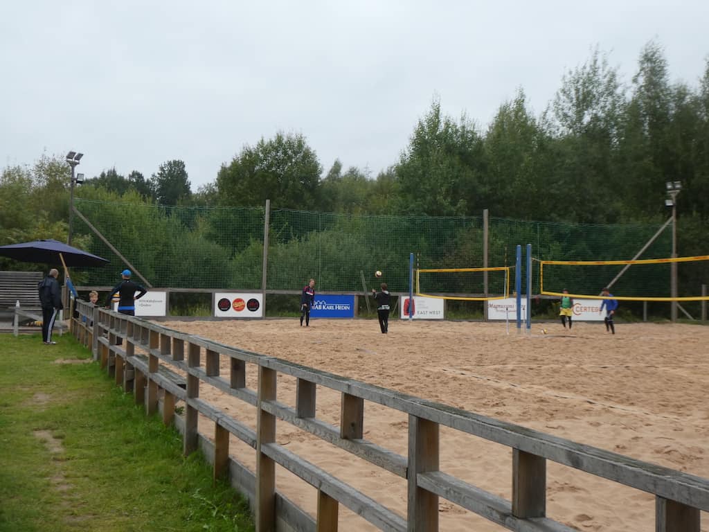 Nebenan auf dem Beachvolley-Platz trainieren doch tatsächlich junge Schweden, ganz ungeachtet des Regens.