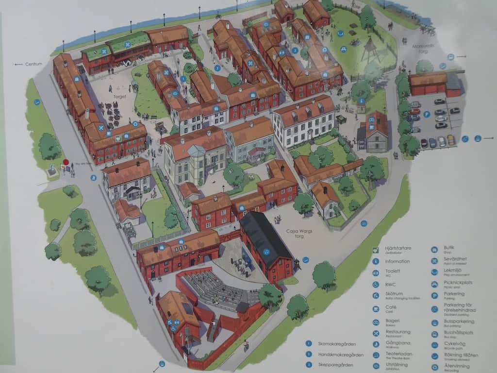 Und als dann am späten Nachmittag der Regen doch noch aufhört, machen wir einen Spaziergang durch den Park in das nahe „Wadköping“, wo historische Häuser aus Örebro zusammengetragen wurden.