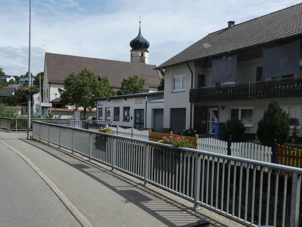 Von dort sind wir sehr schnell im Ort. Es ist angenehm warm, sieht aber nach Regen aus. Vorsorglich nehmen wir die Schirme mit.