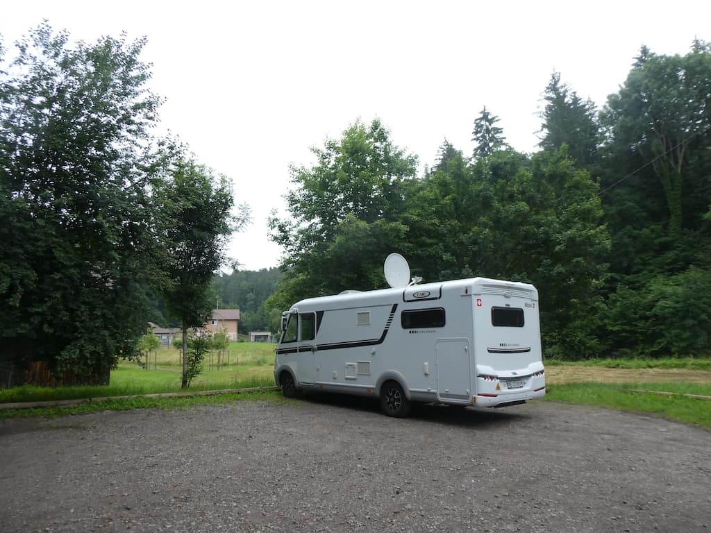 Unser Stellplatzführer zeigt uns in Dettenhausen bei einem Wanderparkplatz eine ruhige Übernachtungsmöglichkeit an.