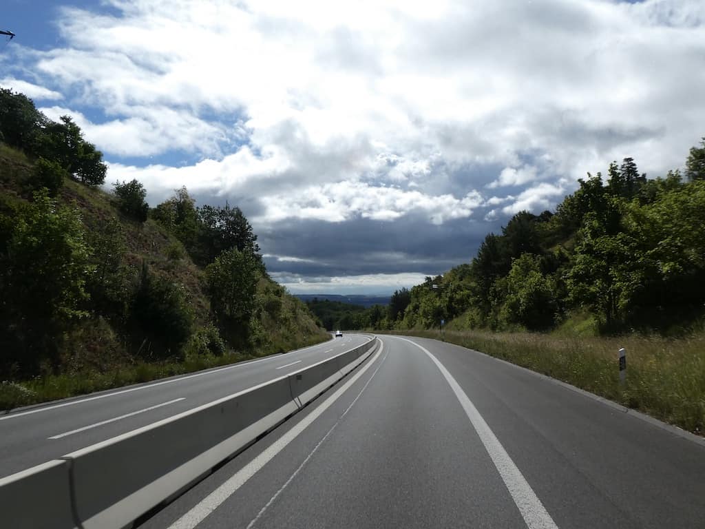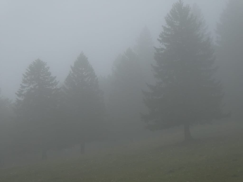 Bald kommen wir in die typische Juravegetation. Aber je höher, desto mehr fahren wir in den Nebel hinein.