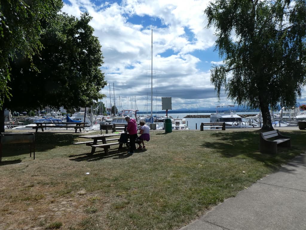 In St. Aubin ist bereits strahlender Sonnenschein. Wir steuern hier die Entsorgungsstation beim Hafen an. Früher waren wir oft mit unserer Segelyacht in diesem Hafen.