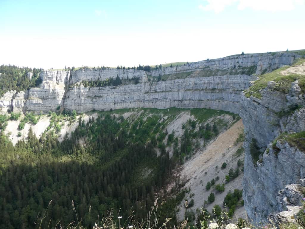Es ist schon imposant: 1200 m breit und 500 m tief ist der Kessel bis ins Tal der Areuse. Die senkrechten Felswände sind 160 Meter hoch. Mehr dazu hier. Ein Hauch von Grand Canyon im Schweizer Format.