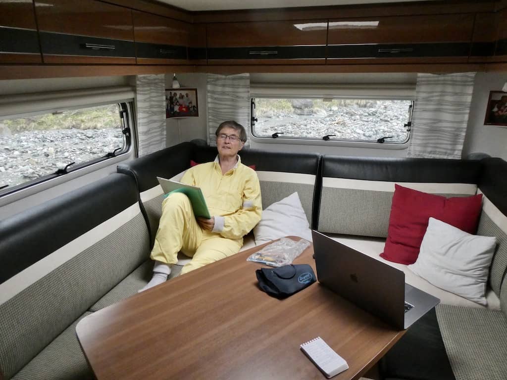 Wir kommen gerade von unserem Spaziergang zurück, da setzt der Regen wieder ein. So machen wir es uns in unserem Mobil gemütlich. Aber immerhin hatten wir heute unten im Rhonetal auch eine ganze Weile Sonnenschein. Also bitte nicht meckern.