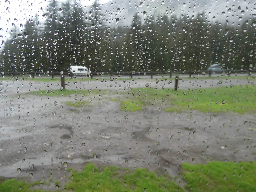 Mit Regen sind wir eingeschlafen, mit Regen werden wir wach. Ringsum trist und nass. Teilweise prasselten gestern Nacht die Tropfen so stark auf’s Dach, dass wir uns beim Kartenspielen nicht mehr normal unterhalten konnten.