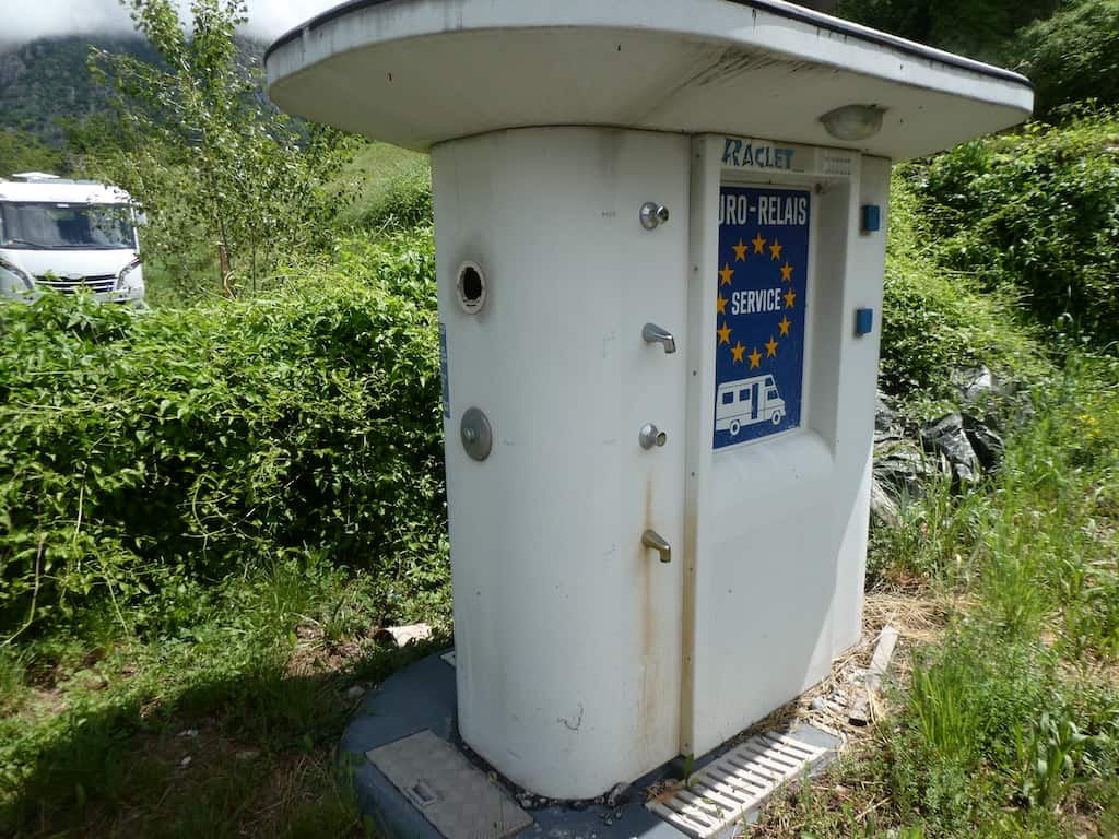 Doch leider ist die Euro-Relais-Station vergammelt und ausser Betrieb. Wir sehen aber auf der angrenzenden Wiese einen Wasserhahn mit Gartenschlauch. Dort füllen wir unseren Frischwassertank auf (aus hygienischen Gründen mit unserem eigenen Schlauch). Immer noch in der Meinung, dass dies der ausgewiesene Stellplatz ist, bleiben wir zum Mittagessen hier. Wir trinken gerade unseren Kaffee, da kommt eine Madame vom nahen Restaurant und klärt uns auf, dass dies schon seit 10 Jahren ein Privatplatz ist. Angeschrieben ist er aber nicht als solcher! Nun gut, mit einem «Excusez-moi. Nous partons dans cinq minutes », ist der Fall erledigt. Zum Glück haben wir auf diese Art einen vollen Frischwassertank. Aber wir müssen nun einen neuen Stellplatz suchen.