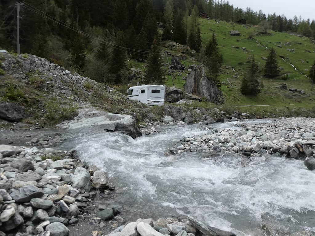Diese Strasse weiter ist im Val de Dix – am Ende des Val d’Hérens – knapp unter der Staumauer der Grande Dixance ein Übernachtungsplatz angegeben. Den wollen wir ansteuern.