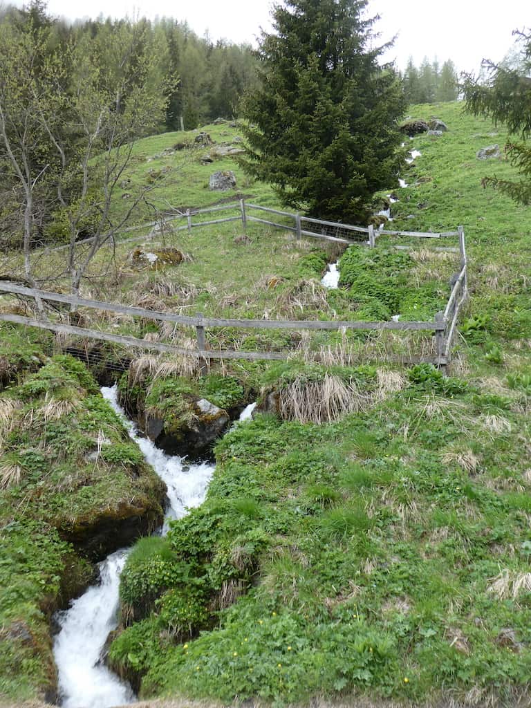 Überall schiesst das Wasser von den Bergen. Viele dieser Bächlein sind mit Namen ausgeschildert.