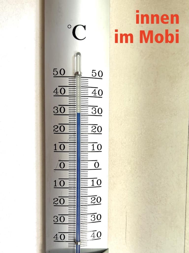 34° sind unter der Markise, innen im Mobi hingegen «nur» 31°.
