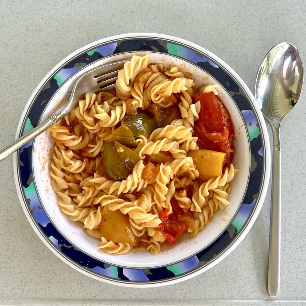 Renate bereitete mit «Ratatouille» auch noch ein schweisstreibendes Mittagessen zu, denn bei Hitze soll man ja scharf essen – so heisst es.