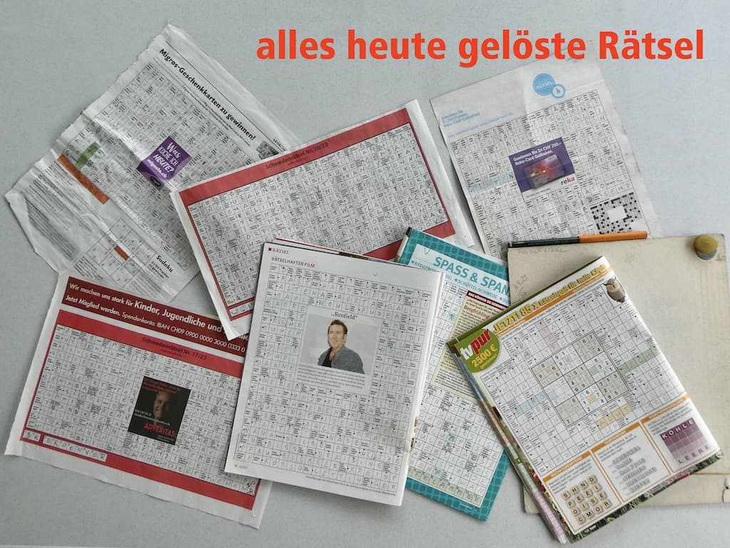 Trotz der Hitze waren wir ganz schön produktiv in Sachen Kreuzworträtsel lösen. Doch wir haben auch noch viel Vorrat.