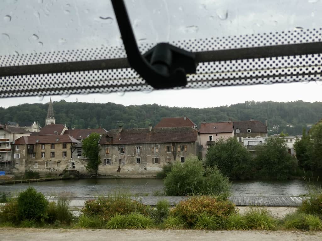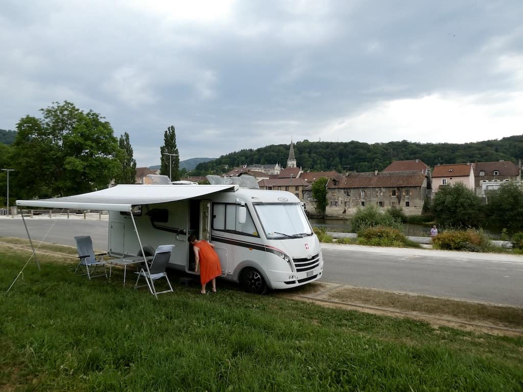 Wir beschliessen heute einen ruhigen Tag einzulegen. Es ist uns einfach zu heiss um weiterzufahren. Der Stellplatz ist prima. Wasser und Entsorgung in 20 Meter Entfernung. Viel mehr braucht ein Camper nicht. Ein Lidl zum Einkaufen ist 300 Meter entfernt, aber der hat heute, Sonntag, geschlossen. Da wir aber mit Proviant eingedeckt sind, kümmert uns das nicht. Die anderen Camper haben den Platz heute verlassen, sodass wir nun sogar freie Sicht auf dem Doubs haben.
