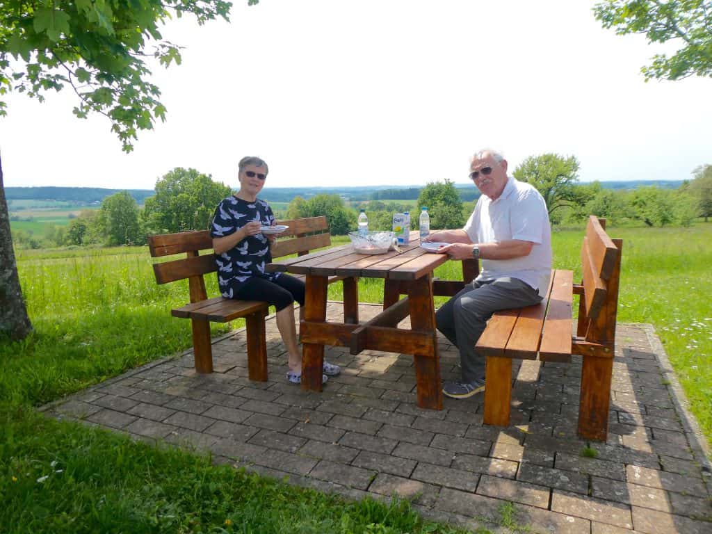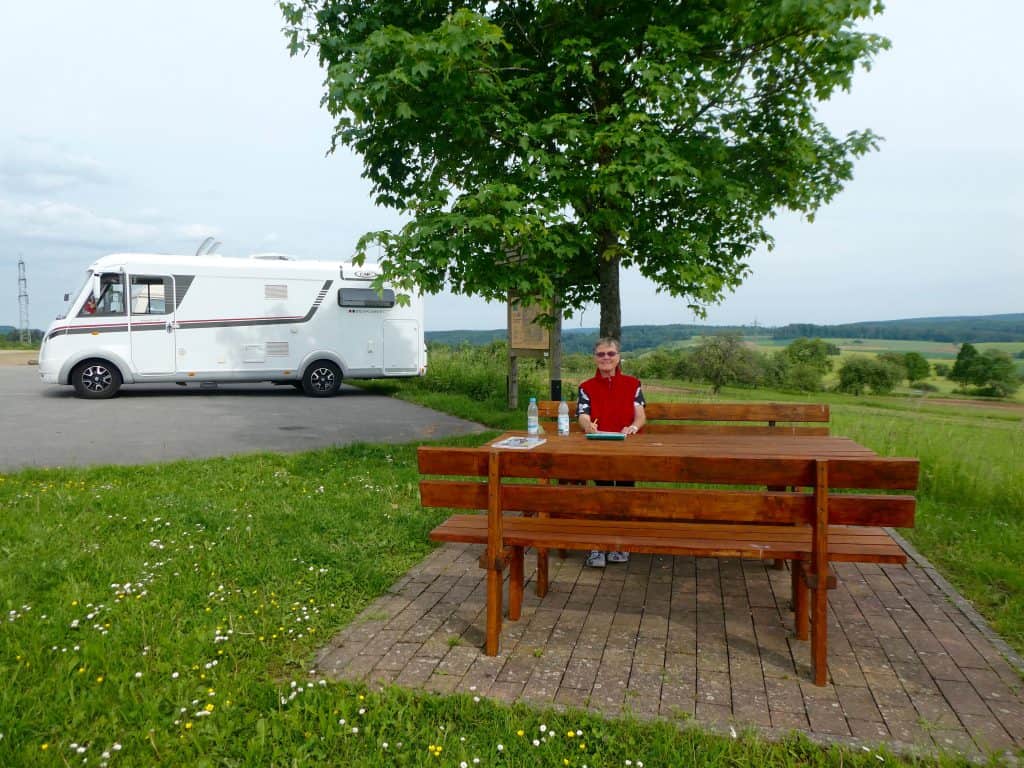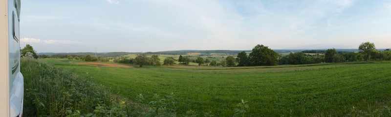 Schon nach kurzer Fahrt beschliessen wir, den Tag auf dem Stellplatz in Neunkirchen im „Naturpark Neckartal-Odenwald“ zu verbringen. Wir stehen hier mit einem grandiosen Blick in die grüne Landschaft.