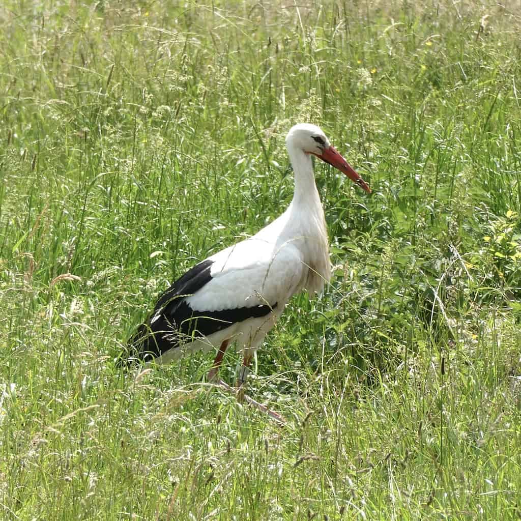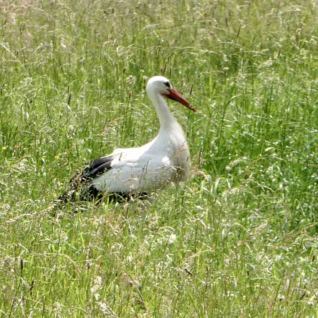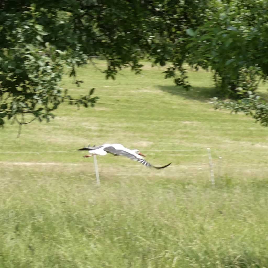 Während des Frühstücks besucht uns, wie in den letzten Tagen, wieder der Storch. Heute erwischen wir ihn sogar im Flug.