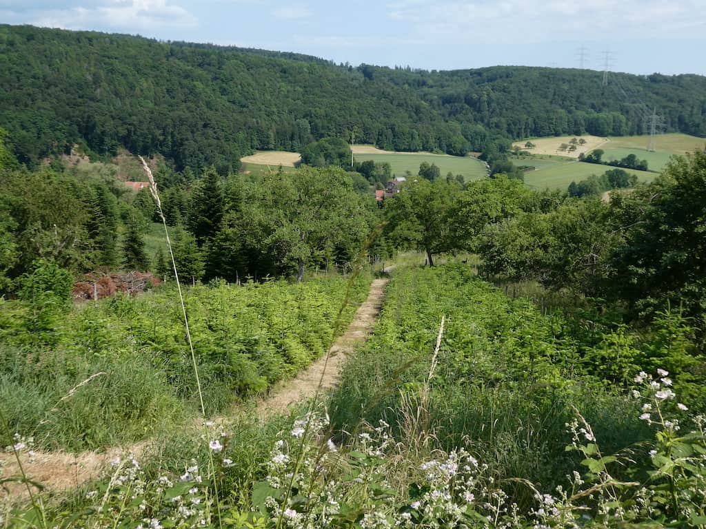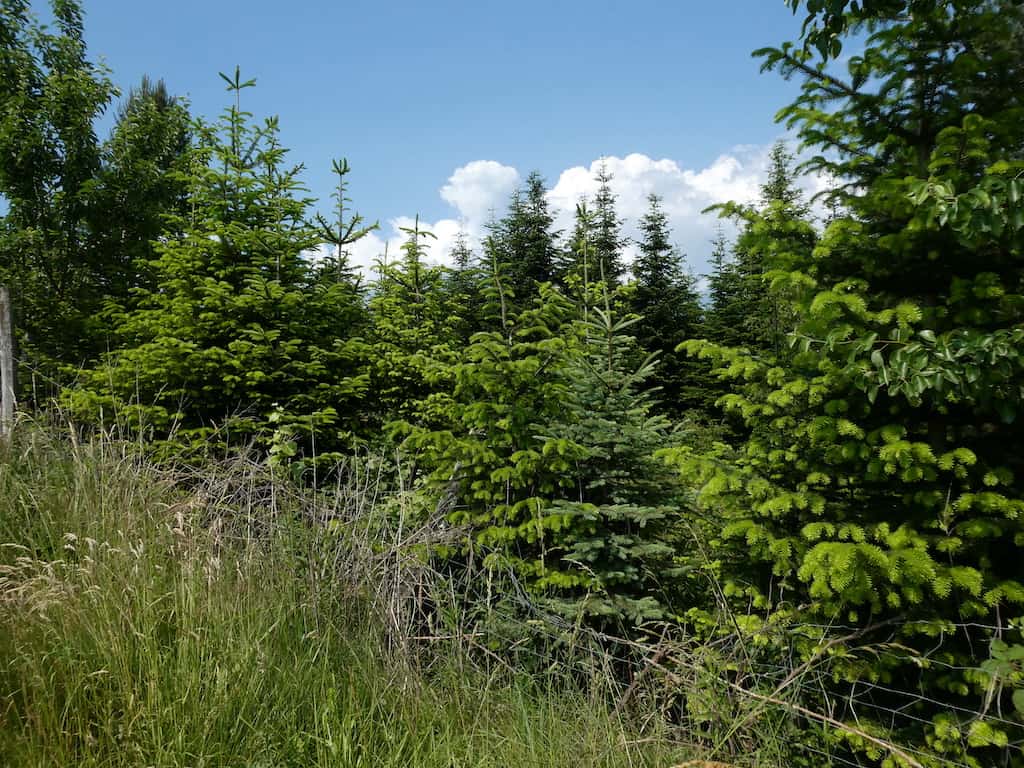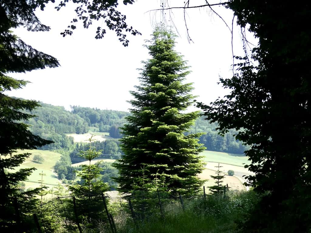 Wir spazieren bergwärts an den Tannenbaum-Plantagen vorbei. Viele Bäume sind wohl schon zu gross für ein normales Wohnzimmer.