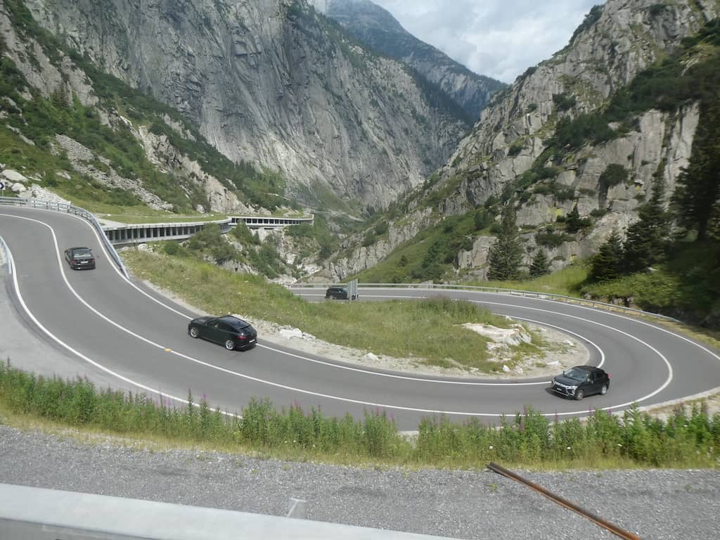 In Wassen zweigen wir auf den Sustenpass ab. Das «Chilleli» ist allen Bahnfahrern bekannt. Weil man sie dreimal sehen kann. Der Grund für dieses Kuriosum sind die berühmten Kehrtunnel der Gotthardlinie. Danach führt die Sustenstrasse durch das Meiental bergan.