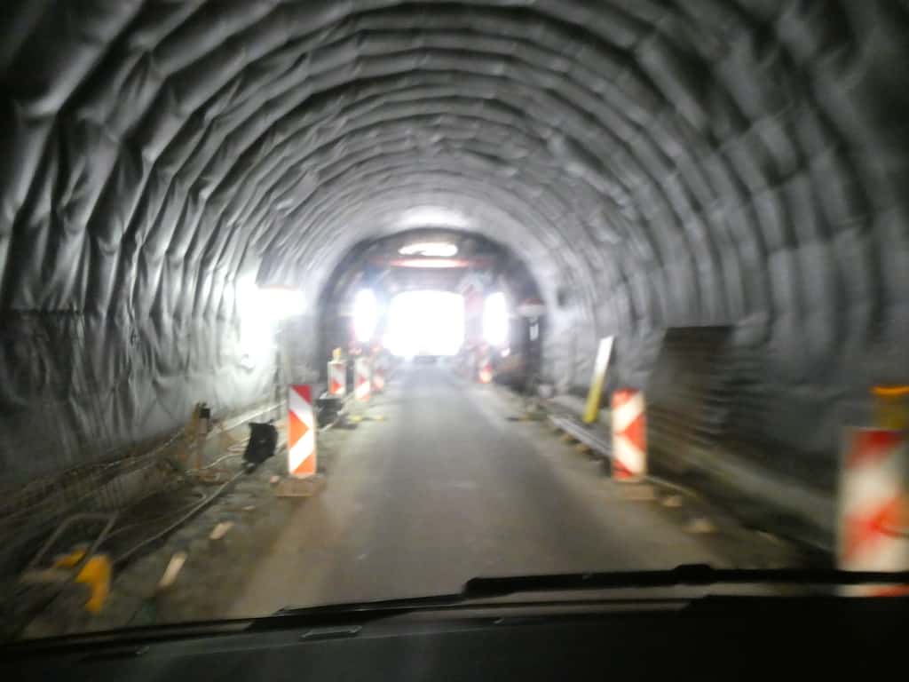 Anfangs läuft der Verkehr noch flüssig. Später verzögert sich unsere Fahrt, durch „stop and go“ vor der Ampel der Baustelle im Tunnel, um sicher eine Stunde.