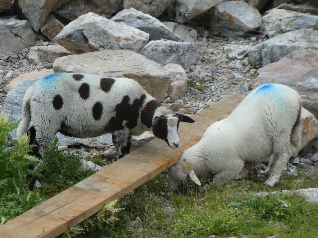 Umgeben sind wir von Blumen und Schafen, letztere dürfen hier frei herumlaufen.