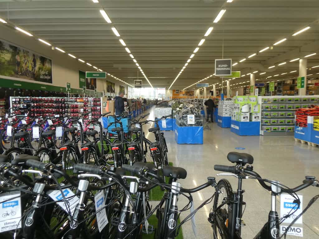 Auf der Weiterfahrt fällt uns auf, dass hier (am Sonntag) ein Biltema-Laden geöffnet hat. Da wollte Michael schon lange einmal hineinschauen. Ein riesiges Angebot mit technischen Artikeln für Handwerk und Freizeit, aber auch für Klamotten.
