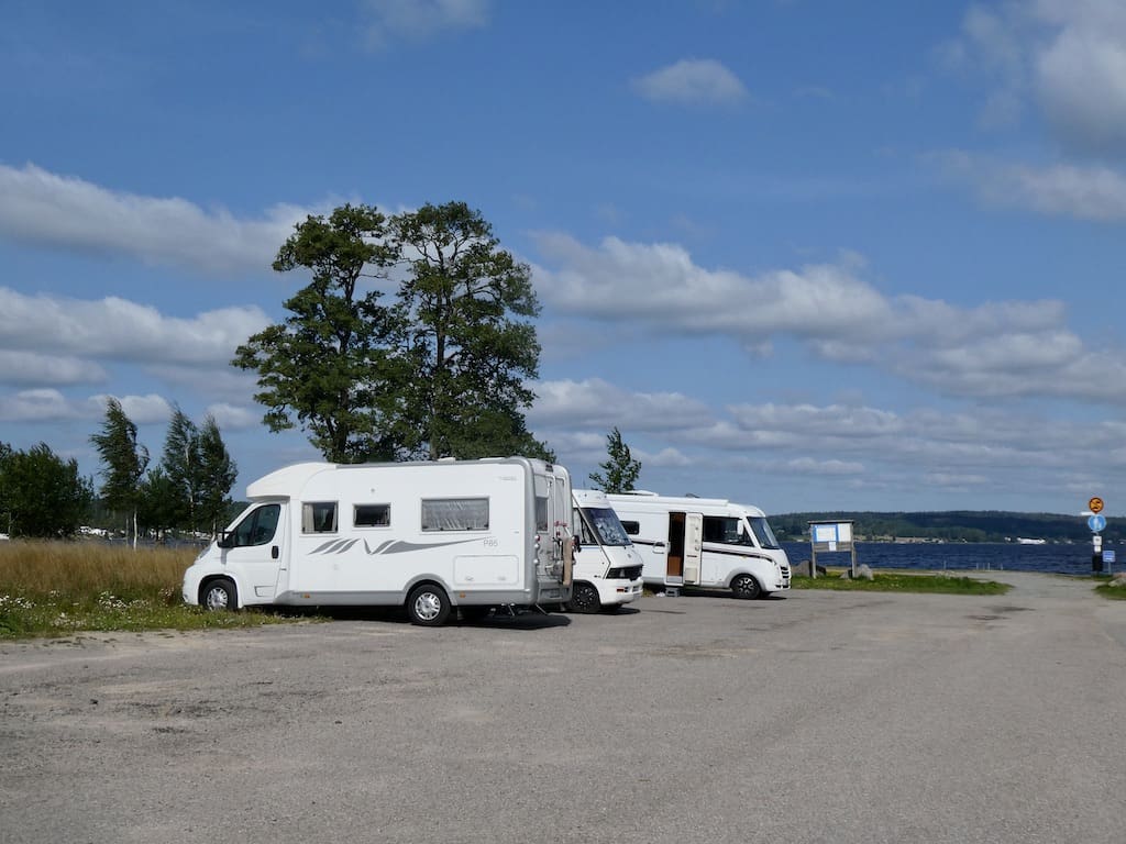 Das erste Ziel ist eine Entsorgungsstelle in den Kilsbergen bei Sveaskog. Diese liegt blöderweise auf einem Rastplatz in der Gegenrichtung. Um dorthin zu kommen müssen wir einen Umweg von 10 Kilometern machen, werden dafür aber unsere Fäkalien los. Und schön an einem See gelegen ist dieser Rastplatz auch.