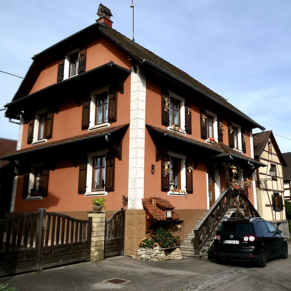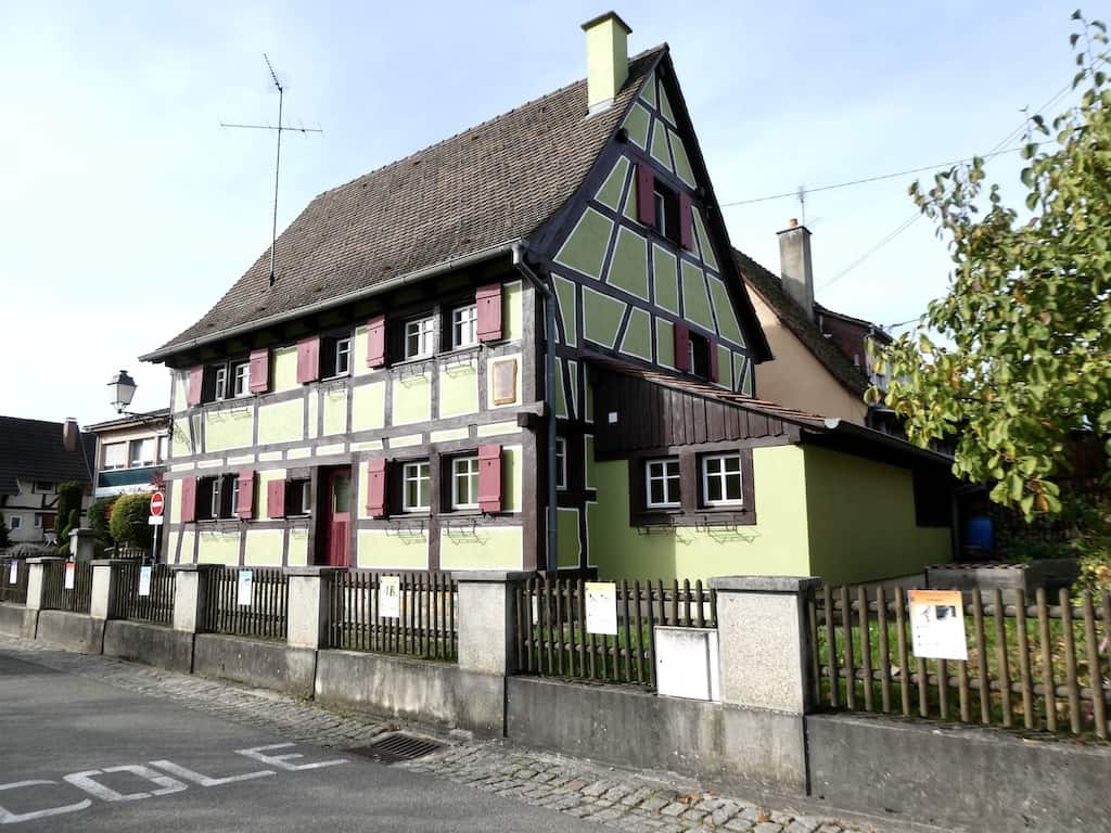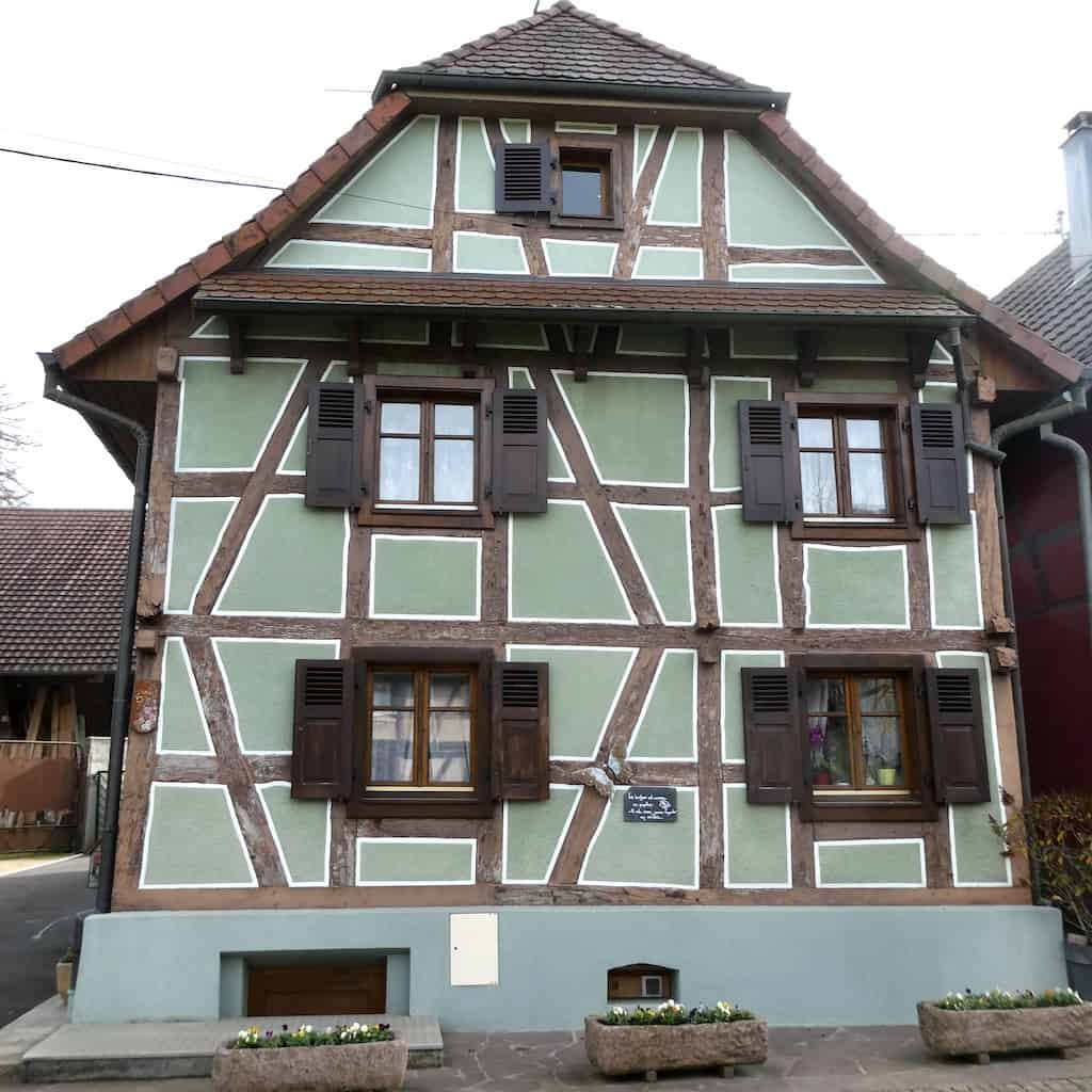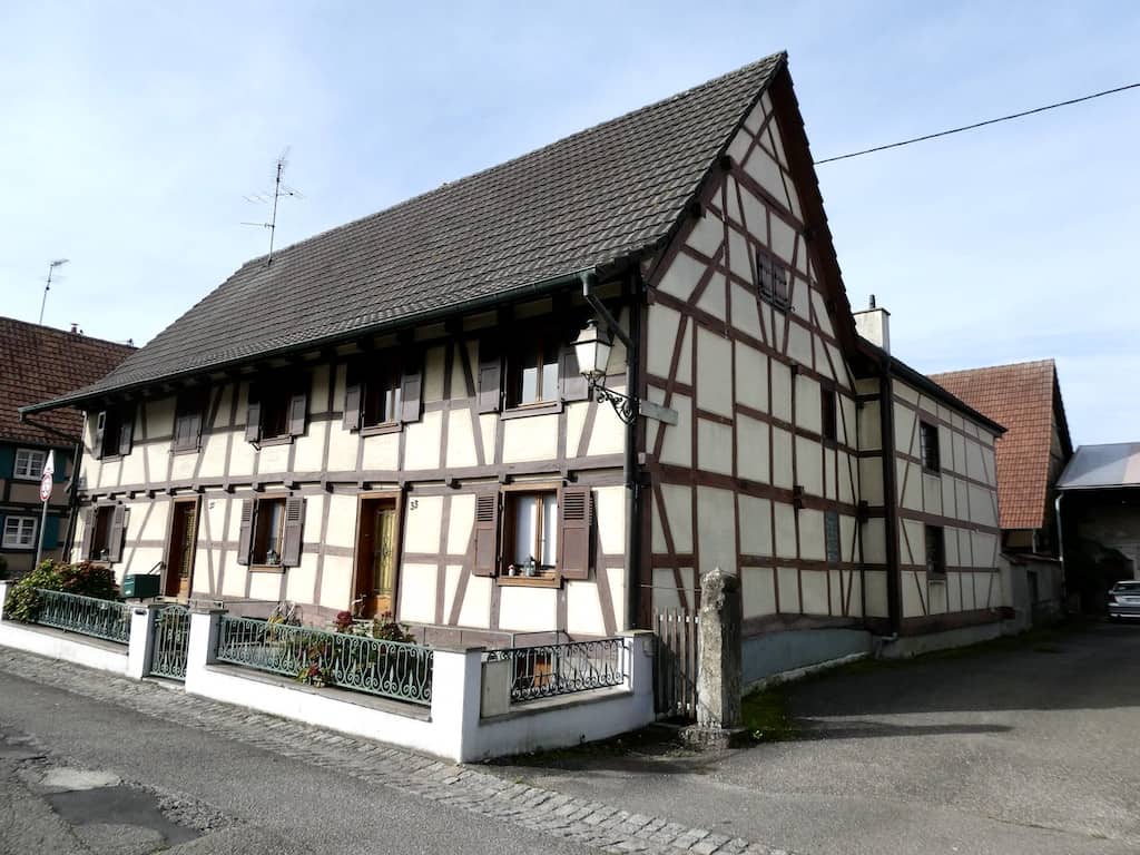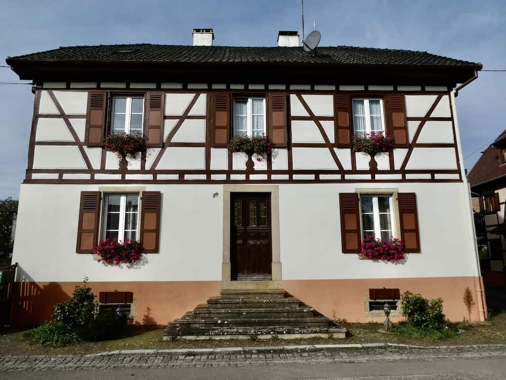 An beiden Seiten des Bachs zieht sich der Ort gefühlt endlos dahin. Nach etwa 1,5 Kilometern kehren wir um. Fast alles sind freistehende alte Häuser, farbig angemalt, wie für das Süd-Elsass typisch.