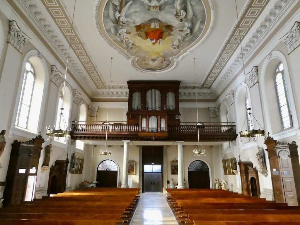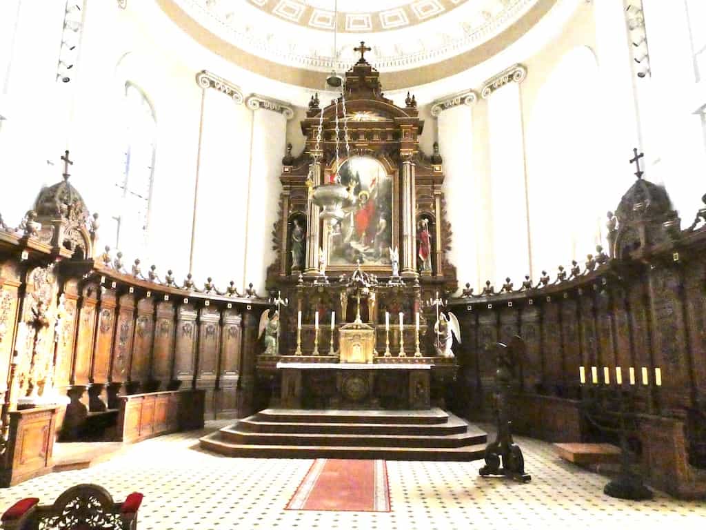 Das wunderschön geschnitzte Chorgestühl und die Orgel.
