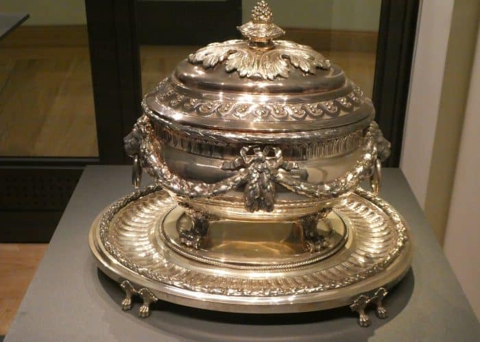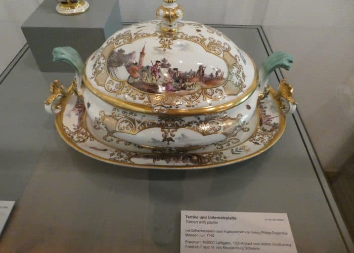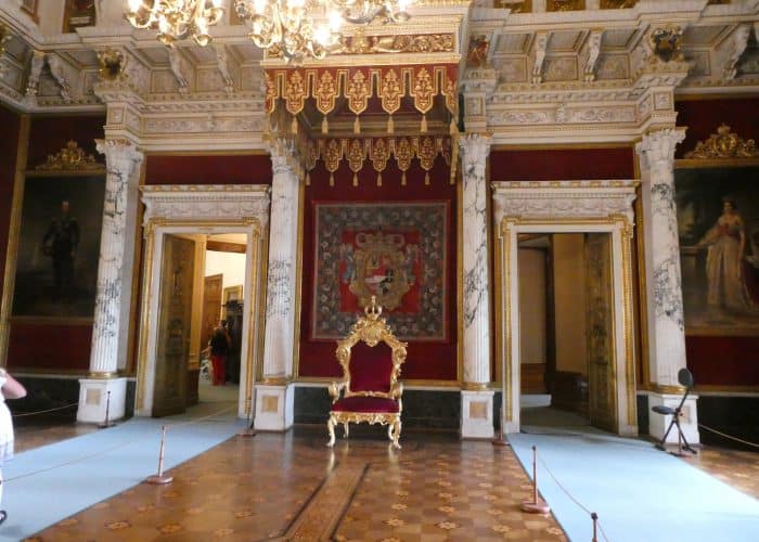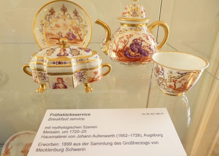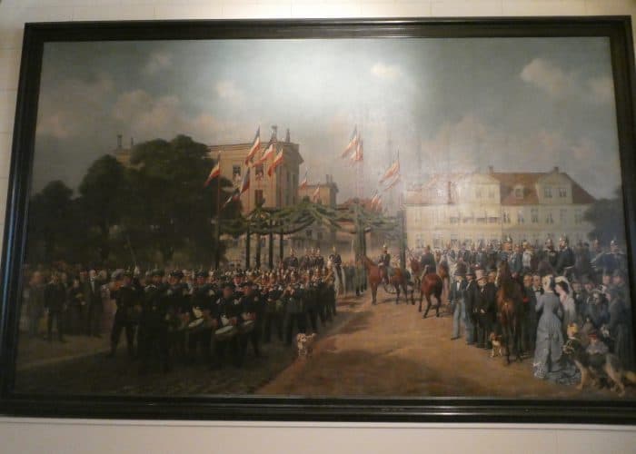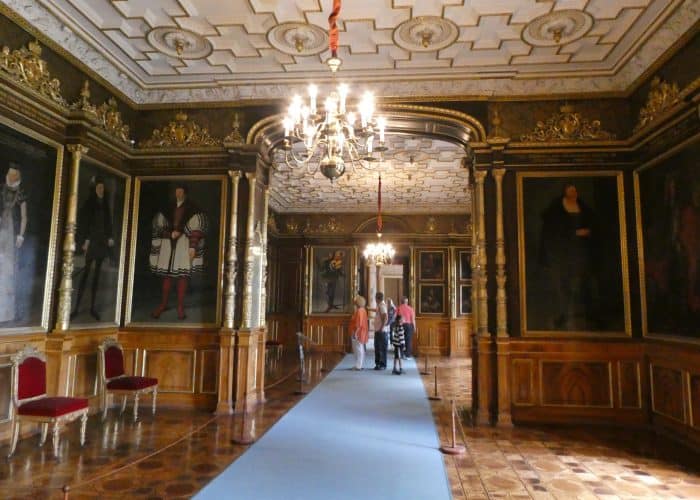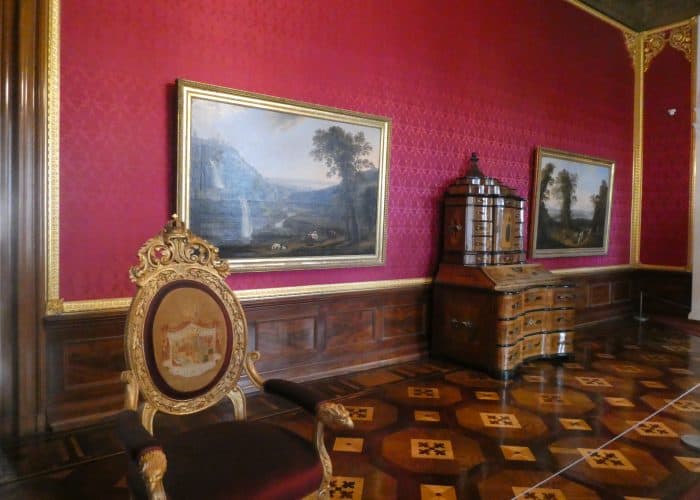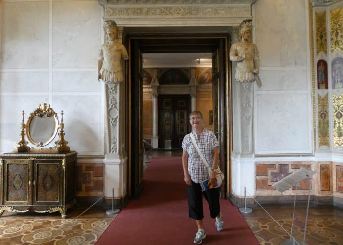 Wir besichtigen die prunkvollen Räume, wie den Thronsaal, die Ahnengalerie, Wohn- und Gesellschaftsräume. Wir sehen viel kostbares Porzellan und höfisches Tafelsilber, – wunderbare Handwerkskunst. Sogar die Gewehre waren kunstvoll verziert, als müsste ihr eigentlicher Zweck kaschiert werden.