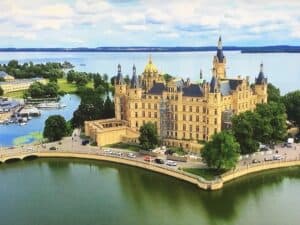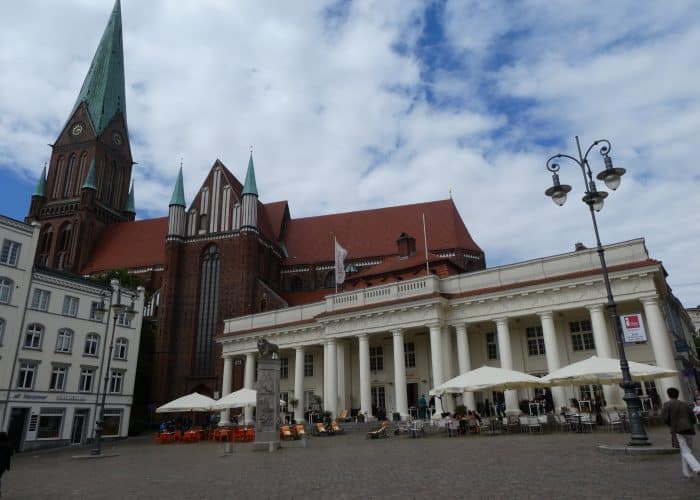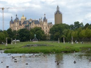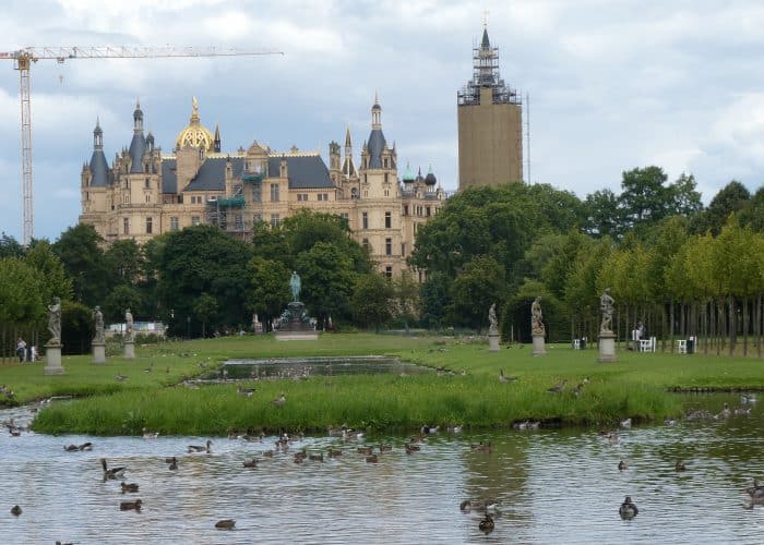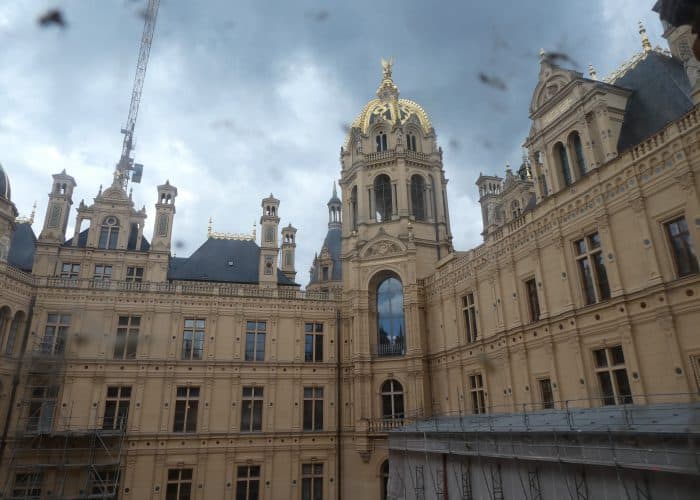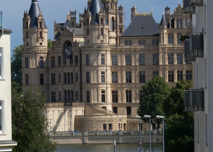 Mit seinen vielen Türmen und Türmchen und golden funkelnden Zinnen könnte es Vorlage für ein Märchenschloss sein. Einst Sitz der Herzöge, ist es heute der Sitz des Landtags von Mecklenburg-Vorpommern, sowie für ein Museum.