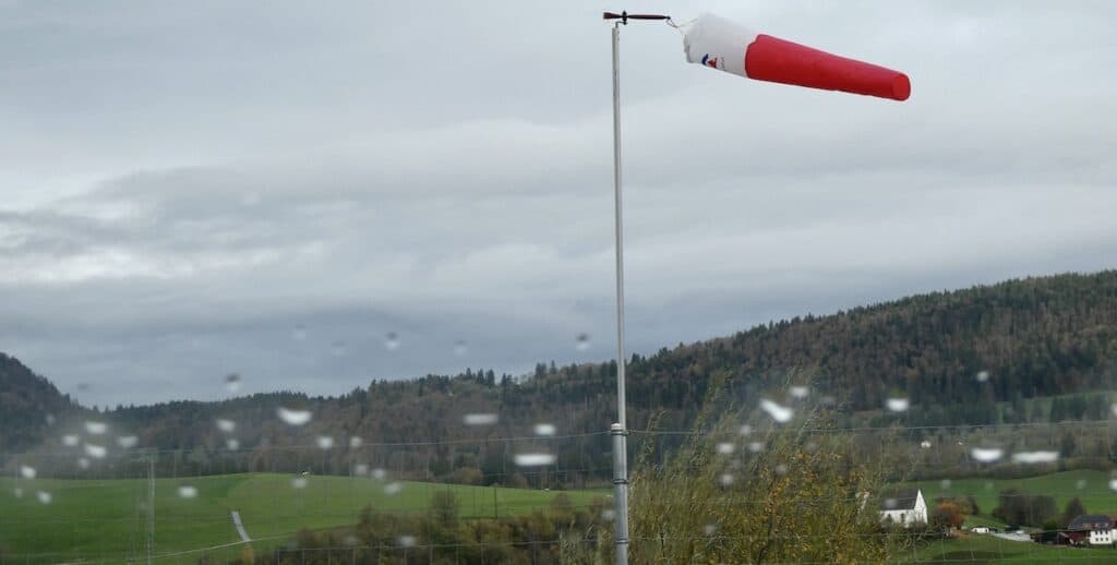 In der Nacht hat es anhaltend geregnet. Der Blick morgens aus dem Mobi zeigt; die Wolken hängen tief und immer wieder entlädt sich eine dieser Wolken.