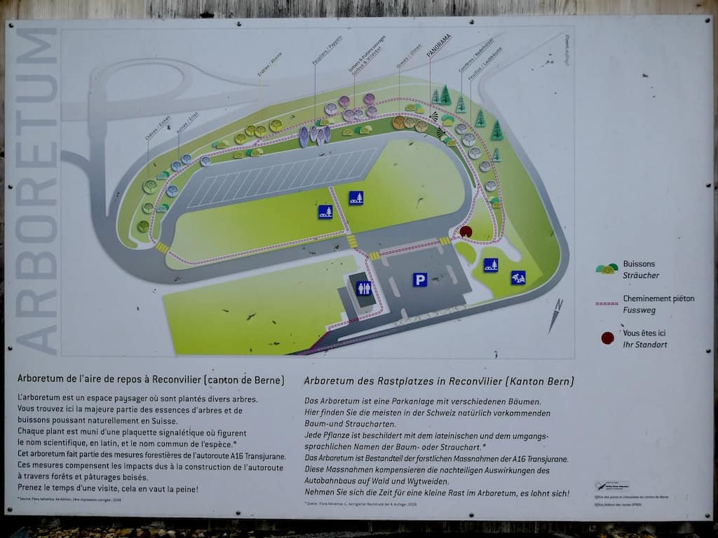 Bei schönem Wetter wäre der Arboretum-Rundgang auf diesem Rastplatz mit den verschiedenen Baum-Arten sicher interessant. So aber entscheiden wir uns für die Fahrt nach Hause.