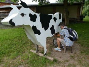 Renate wollte gerne das Freilichtmuseum für Volkskunde Schwerin-Muess besuchen. Wir reservierten unseren Stellplatz und fuhren mit dem Mobi dort hin.