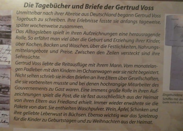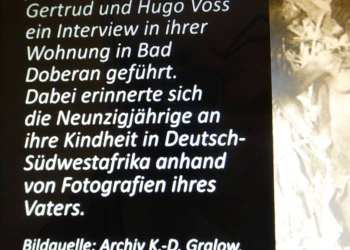 Wir trafen Herrn K.D.Gralow, der die Tagebücher der Gertrud Voss „Postadresse Landmesser Voss, Ochsenwagen, DSWA“ herausbrachte und hier gerade für das NDR-Fernsehen Nordmagazin „Zeitreise“ einen Film dreht. Dieser wird am 3. September um 19:30 gesendet.